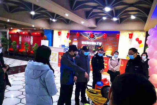 今日房县网讯 通讯员 杨琳 报道:为贯彻落实日前召开的春节期间疫情防控督导会议精神,全面排查文化市场疫情防控漏洞、切实落实防控要求,及时堵住一切可能导致疫情反弹的窟窿和漏洞,确保全县文旅市场安全、有序和稳定。2020年1月8日下午,房县文旅局局长刘世宏带领文旅执法大队对全县文化市场密集场所开展专项检查,重点检查经营单位限流(75%)、人员扫码登记、体温检测、佩戴口罩等防控措施落实情况。