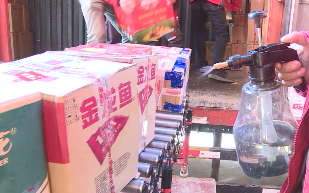 1月12日,在京东快递物流点记者看到前来寄送快递的人络绎不绝,寄送黄酒的居民已排成长队,工作人员正在麻利地打包、寄件。