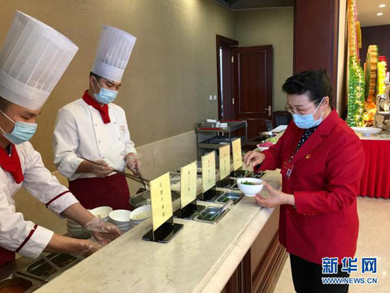 2020年10月29日,受邀列席党的十九届五中全会的基层社区工作者吴亚琴在京西宾馆餐厅取了一份小碗面。她表示:“盛面的碗也都是小碗,吃多少打多少。”新华社记者 朱基钗 摄