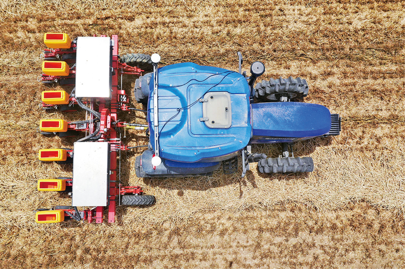 “十三五”时期,“天眼”望天、“蛟龙”探海、超级计算机竞逐榜首,北斗导航全球组网,5G网络加速成型,数字经济占GDP比重超三成,创新驱动发展成果与广阔的应用场景交汇融合,支撑我国经济高质量发展取得新成效。图为2020年5月26日,在河南省邓州市小杨营镇安众村,加装有北斗导航系统的拖拉机在无人驾驶状态下播种。新华社记者 冯大鹏/摄