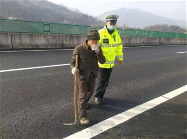 1日17日上午10时许,高警房县大队巡逻民警在辖区谷竹路青峰路段巡逻时,突然发现一位六十多岁的村民老大爷手拿一把锄头正在步履蹒跚地穿行在行车道与超车道之间,丝毫没有顾忌过往车辆。当时800米外有一辆货车正在同向而驶,而且不停地鸣笛,可老大爷丝毫没有意识到危险。民警见状,紧急停下巡逻车并拉响警报器提醒来往车辆,随后迅速下车搀扶着将老大爷拉到应急车道边。