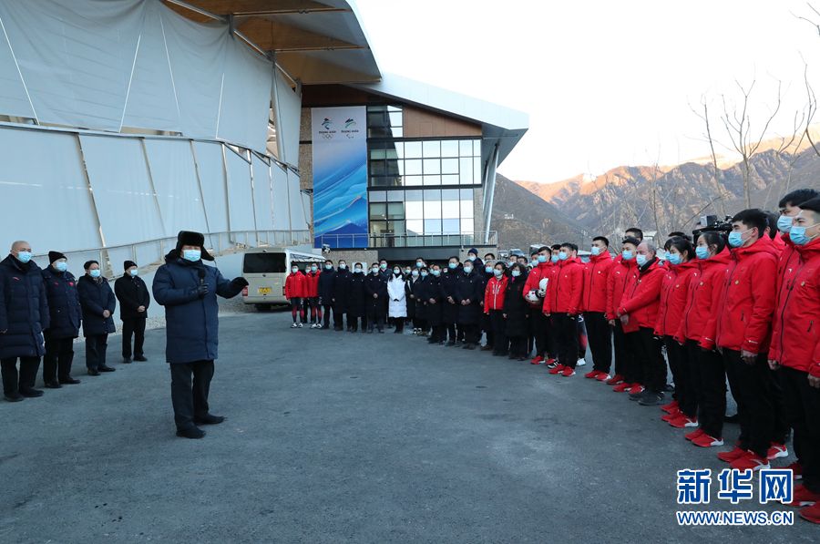 1月18日至20日,中共中央总书记、国家主席、中央军委主席习近平在北京、河北考察,并主持召开北京2022年冬奥会和冬残奥会筹办工作汇报会。这是18日下午,习近平在位于北京市延庆区的国家雪车雪橇中心,看望慰问国家雪车、雪橇队运动员、教练员和延庆赛区运行保障团队、建设者代表。新华社记者 鞠鹏 摄