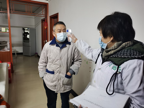1月24日一大早,社区村医杜著芬就带好健康档案和体温枪来到他家。“体温正常,有没有什么不舒服?在家没有出门吧?”在查完体温后,杜医生还叮嘱他们居家隔离的注意事项,提醒他们保持良好的心情,注意健康饮食。目前整个社区所有的在外返乡人员都进行了登记,分是否来自中高风险区分类进行健康监测。