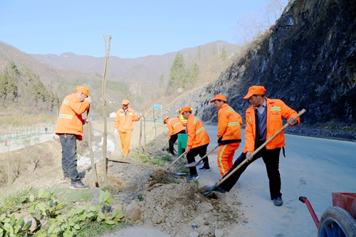 今日房县网讯 通讯员 王东 刘静静 报道:2月23日上午,笔者在我县209国道杜阳路看到,县交通公路部门正抢抓晴好天气组织养护职工开展绿化植树活动。