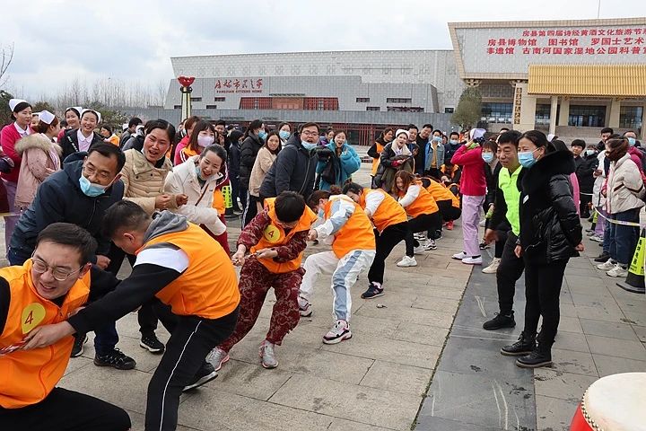今日房县网讯 通讯员 裴中东 报道:3月8日下午,细雨霏霏,在县诗经文化广场,人声鼎沸,欢歌笑语。伴随着一阵阵热情高亢的加油声,一条粗大的缆绳被两边身穿各色马甲的比赛人员紧紧地拽在手里。随着一声哨响,只见参赛的队员们紧握长绳,卯足了劲拼命往后拉。