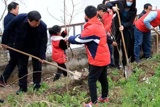 9日下午,县政协副主席张光斌,秘书长龚承权,房县共青团团委,青峰镇党委书记李伟,镇长袁静,县幼儿园志愿者,县聚爱义工志愿者等16人来到青峰镇清河小学和全体师生一起参加植树增绿护绿活动。