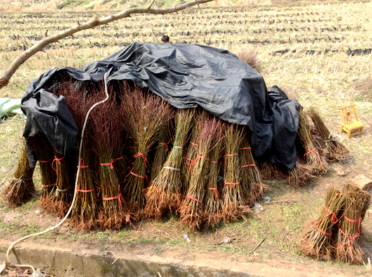 (黄桃树苗等待落地生根)