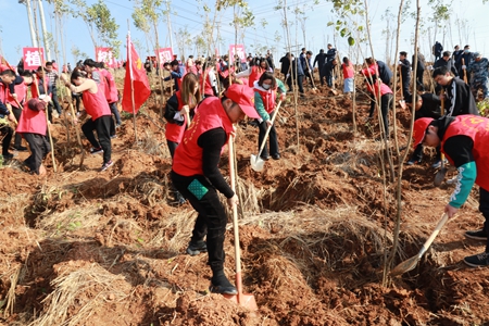 县四家班子领导带头植树添新绿