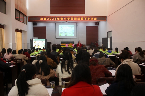 今日房县网讯 通讯员 郭品丽 郭红艳 报道:为深化英语课堂教学改革,共享优质教育资源,充分发挥名师引领、示范作用。3月17日,房县小学英语送教下乡培训活动在军店小学举行,来自九道、上龛、窑淮、门古、红塔、化龙、白鹤等12个乡镇100余名小学英语教师参加培训。