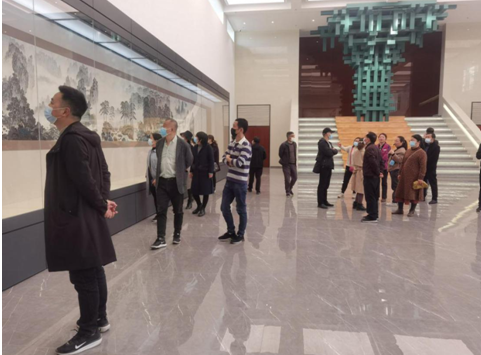 游客在罗国士艺术馆观摩大师神龙山水巨作
