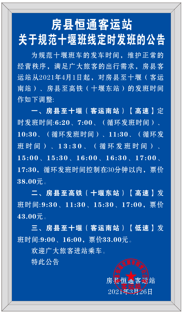 房县恒通客运站关于规范十堰班线定时发班的公告-今日房县网-- 房县门户