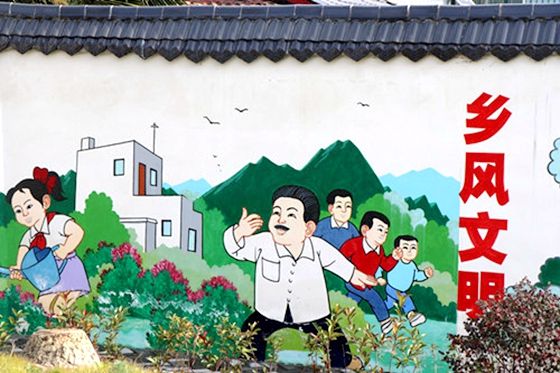 “家合万事兴、“百善孝为先”,走进八里村,一股文明新风扑面而来,只见村道小巷的公共涂鸦墙体,构图简洁,形象生动。原本空白、毫无生机的墙面被画上了精美墙绘,墙绘将农耕生活、自然景观与中华传统美德、社会主义核心价值观相结合,让人在赏心悦目。曾经杂乱无章的围墙如今都绘上了美丽的文化墙绘,一面墙“画”出了文明新风。