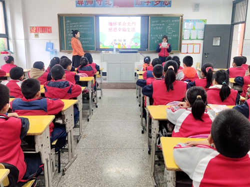 三是背诵清明小诗。各班根据学生年龄特点通过诵读和表演等形式开展以“缅怀革命先烈 感恩幸福生活”为主题的班会活动,朗诵清明小诗、讲述先辈的故事等多种形式表达对革命先烈的缅怀与敬仰,激励他们珍惜今天,把握明天,展望未来。
