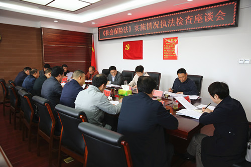 在《社会保险法》实施情况执法检查座谈会上,相关职能部门围绕《社会保险法》实施情况中存在的问题及建议作了交流发言。杨立武指出,社会保险与每个公民的利益息息相关,开展《社会保险法》实施情况执法检查,能够促进各单位学习知识、提高认识、形成共识,对于保障职工合法权益具有十分重要的意义。各相关职能部门要高度关注社会保险工作,正确处理好自身建设和职工利益的关系;监管部门要加大对重点企事业单位、群体在社会保险工作方面的监督和指导,切实提升其缴纳社会保险的主动性、自觉性,确保实现“应收尽收、应保尽保”;要加强汇报沟通,积极争取帮助和支持,促进遗留问题解决;要加大执法力度,严厉打击违法行为,达到整顿一个,教育一片的效果,切实增强企事业单位依法参保意识;要加强《社会保险法》的宣传教育,加大各部门配合力度,充分借鉴、利用成功经验和做法,通过开展重大活动、服务窗口、网络媒体等途径广泛宣传,营造人人学法、人人懂法的良好氛围;要以此次执法检查为契机,及时发现、总结、收集《社会保险法》贯彻落实相关问题,深入分析研判,形成有分量的检查材料,并充分利用检查结果,为县委、政府决策提供参考,为加强我县社会保障建设,助推“十四五”民生保障任务的落实贡献力量,切实提升全县广大人民群众的获得感、幸福感。