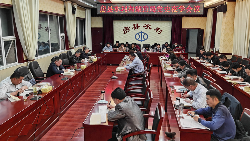 今日房县网讯 特约记者 张启龙 通讯员 唐雪松 摄 : 4月15日,房县水利和湖泊局组织干部职工夜学党史,图为集中夜学《中国共产党简史》。该县水利和湖泊系统将“学党史、感党恩、我为水利事业作奉献”贯穿一条红线,通过开展学党史读本、看党史电影、缅怀革命先烈等形式的党史学习教育,激发干部职工忠实履职,在水利工程建设管理服务乡村振兴中再做新贡献。今年以来,全县一批重点农村饮水工程、河道治理、农田灌区等水利项目全面推进,农村水利基础设施日臻配套完善,广大农民的幸福感、获得感显著增强。