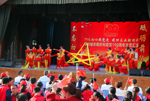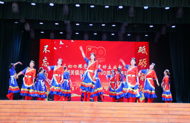 下午4时30分许,该镇党委副书记、镇长蔡建宇首先致辞,表达了对党的历史伟绩的颂扬与感恩、并向全镇党员和居民群众送上了节日祝福;接着在由当地干部群众自编自导自演的欢庆热闹的器乐演奏 《威风锣鼓》中拉开了序幕。舞蹈《希望的田野》《渔鼓舞》展现了人民群众脱贫摘帽后的幸福生活;戏曲《梨园春蕾》川剧《变脸》传统文化节目惊艳全场;独唱《不忘初心》、舞蹈《再唱山歌给党听》《我和“星星”打电话》《十送红军》《红星闪闪》为观众呈现了一幅幅感党恩、知奋进、爱祖国的优美画面,表现了城关人民在中国共产党的带领下生活蒸蒸日上、甜美和谐的景象,再现了中国共产党不懈奋斗,最后走向胜利的风雨历程;演出在舞蹈《好儿好女好家园》中圆满落幕。