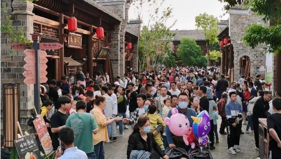 受2021年春节“就地过年”政策影响,在外游子思乡情切。今年五一假期,我县在外地工作、学习的游子都趁着假期回乡和家人团圆,尽情释放积蓄已久的思乡情怀,带来了我县假日旅游市场的“井喷”。全县宾馆酒店各种家宴、朋友同学会等聚会宴请异常火爆,一度出现“一桌难求”现象,很多餐饮店出现了翻台,仅西关印象景区内“蟹太爷艺术餐厅”5月2日就接待70余席,当日销售额逾10万元,这种情况在房县是前所未有的。有游子看着人山人海的西关印象,非常自豪的赞叹说:“原来家乡可以如此受欢迎!”此话迅速在朋友圈中爆红,成为家乡情怀的“金句”,赢得了50万房县人民和外地游客的广泛共鸣。