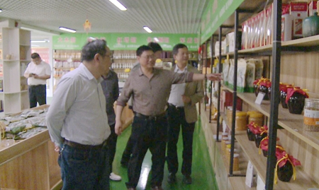 考察团在扶贫832·房县消费扶贫专馆了解特色农产品生产销售情况
