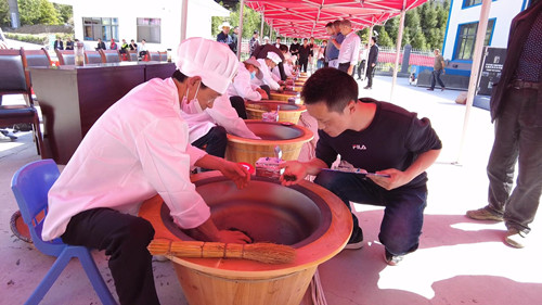 评审环节中,茶叶评审专家通过查看,根据卫生、锅温、杀青方法、杀青程度等内容进行不同打分,最后在评茶区对选手作品的外形、汤色、香气、滋味、叶底等五个方面逐一评分,最终评出炒茶名次。