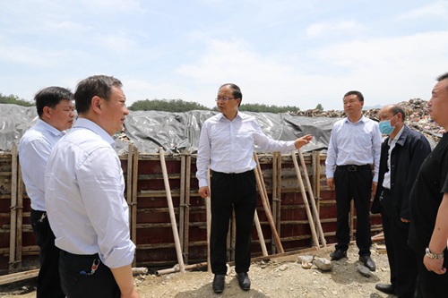 在城区垃圾填埋场,蔡贤忠一行查看了垃圾填埋覆盖、雨污分流、渗滤液处理等有关环保问题整改落实情况,蔡贤忠详细询问填埋场运行、生活垃圾处理、设备运转情况,现场询问省环保督察反馈问题整改完成情况。