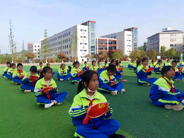 今日房县网讯 通讯员李明琴报道 4月16下午,军店镇党委、房县妇联、房县文旅局等单位在军店小学开展“学党史 颂党恩 百余名学生共绣党旗”向建党100周年献礼活动。