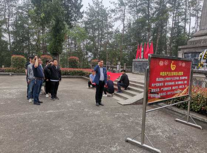 缅怀革命先烈,传承红色基因。在革命烈士纪念碑前,敬献花篮,全体同志向革命先烈默哀三分钟。