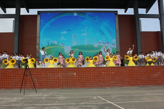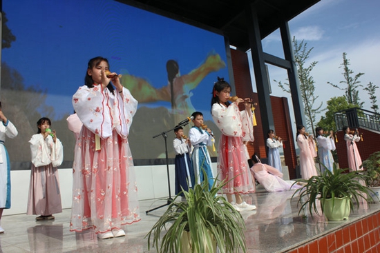 当日上午8点,在军店小学足球场上,军店镇各中小学、幼儿园演出队伍身着节日盛装,组成方阵依次走过主席台接受检阅。随后的文艺成果展示活动在《中国范》鼓声阵阵中拉开帷幕。此次文艺演出共有7个学校18个节目参演,涉及合唱、舞蹈、器乐演奏、经典诵读、戏曲、武术等多种形式。下茅坪小学孩子们带来的葫芦丝合奏《神话》和非洲鼓表演《少年》,精彩的演绎不仅为“校园艺术节”增添了色彩,更代表全校师生耕耘后的累累硕果;军店初级中学表演的舞蹈《谪仙》美轮美奂,赢得了满堂喝彩;何村小学乡村孩子们表演的诗朗诵《少年中国说》以富有节奏的诵读方式,让现场师生激情澎湃,重温国学经典……最令人难忘的是军店小学带来的压轴舞《绚烂》,黄色的向日葵、粉嫩的服饰、开心的笑脸和童真的舞姿,像欢快的溪流舞出最精彩的节奏。《武动中华》武术表演、《青春中国》诗朗诵和幼儿园教师带来的舞蹈《灯火里的中国》也数次将演出气氛推向了高潮。历时90分钟的演出,演员们大方从容的表演,熟练到位的动作,创造了一个个美妙的瞬间,将整个校园变成了欢乐的海洋。