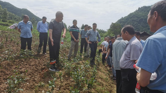当天中午,为使学习成果活学活用,考察团一行顶着烈日来到镇茶叶基地,观看了新栽种茶长势,由农技人员对茶叶田间管理技术进行了传授,并现场观摩了茶叶生产线炒制过程,增强了发展茶叶的信心。