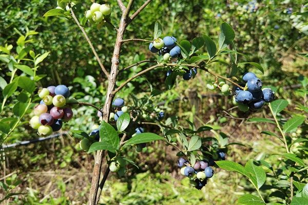 五台乡红场村蓝莓种植基地始建于2015年,先后投资400余万元,种植蓝莓种苗4万多棵,种植面积120亩,2018年已进入丰产期。今年环境气候特别适合蓝莓生长,遇上了蓝莓结果的“大年”,产量可达一万余斤,按照目前市场价50元一斤,产值可达五十万元以上。五台乡红场村蓝莓种植基地先后种植有蓝丰、奥尼尔、布瑞吉他等6个成熟期不同的品种,蓝莓采收期可持续40天以上。
