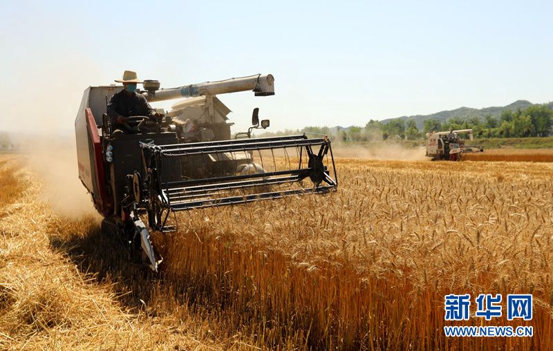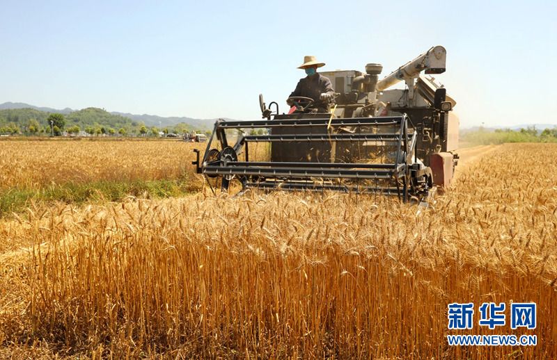 近日,麦客在湖北省十堰市房县军店镇下茅坪村机收小麦。该县抢抓晴好天气时机,集中大中型机械收割金灿灿的小麦。