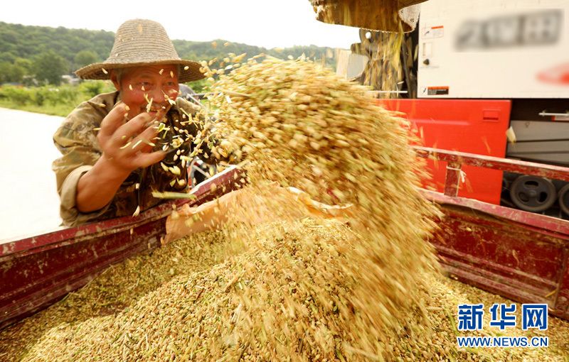 麦客在湖北省十堰市房县军店镇下茅坪村机收小麦 新华网发 张启龙摄