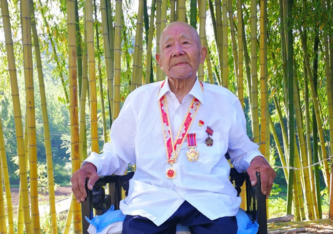 照片上的主角就是93岁的许大和。“一生打了多少场仗,已经记不清了。”聊起战场上的故事,老人打开了话匣子。许大和1928年出生在房县塘溪沟的一户穷苦人家,兄弟三人,他排行老三。5岁时,父母因贫病交加先后离世,他在兄长的照顾下长大。1944年的一天深夜,熟睡中的许大和被国民党抓了壮丁,送往河南抗日前线。1947年7月,许大和所在部队投诚起义,编入解放军原晋冀鲁豫野战军第9纵队,他正式成为一名中国人民解放军战士。由于为人忠诚、作战勇敢,1947年8月,许大和光荣加入中国共产党。
