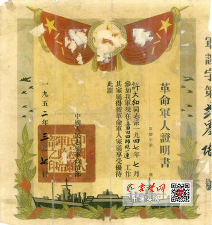 晚年的许大和仍难忘当年的烽火岁月