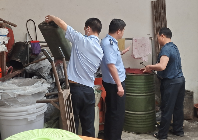 据了解,房县大木厂镇桥梁村有一郭姓村民家中存放散装汽油,接到举报后相关部门立即行动,及时进行调查取证,经审查,涉事人郭某家中存放散装汽油90升,郭某对其非法购买、存储危险物质的违法行为供认不讳,据其陈述,自5月起,他陆续多次在加油站购买散装汽油并储存在家中以方便摩托车加油。目前,大木厂镇派出已依法收缴上述散装汽油,并对郭某依法作出行政拘留。
