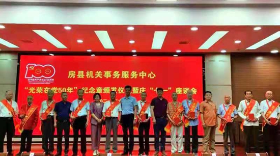 房县机关事务服务中心举办“光荣在党50年”纪念章颁发仪式暨庆“七一”座谈会
