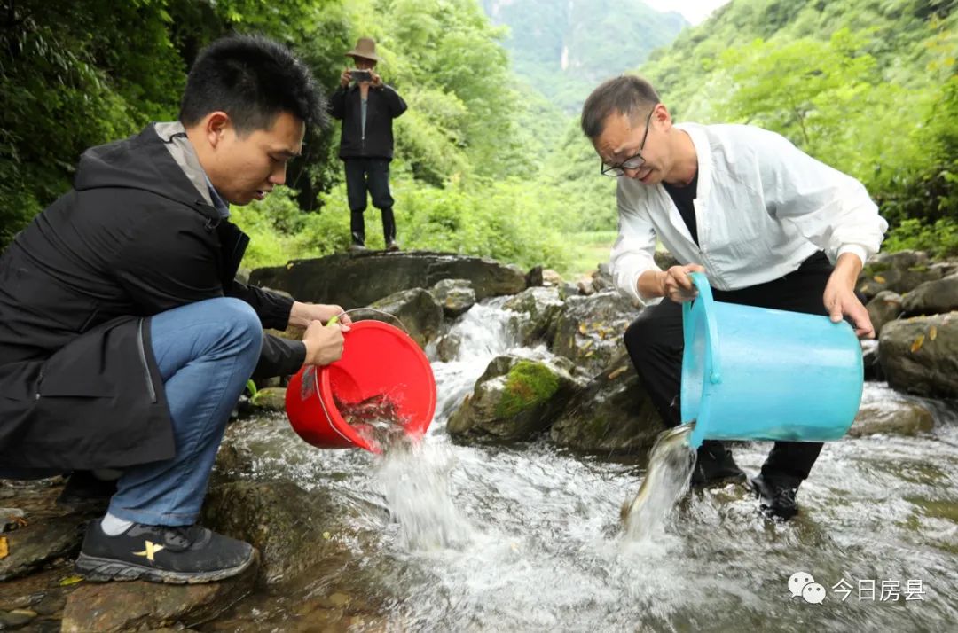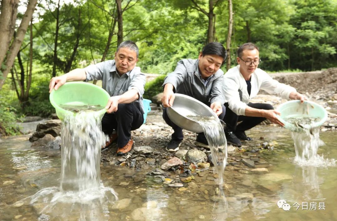近日,房县水利和湖泊局在三里坪库区野人谷镇垭里村渔水沟人工增殖放流钱鱼鱼苗
