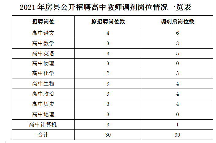 2021年房县面向社会公开招聘高中教师报名工作已经结束,其中:物理3个岗位、地理3个岗位无人报名、计算机3个岗位1人报名。根据《2021年房县面向社会公开招聘高中教师公告》:“此次公开招聘岗位不受开考比例的限制。对无人报考的岗位,经招聘领导小组批准将该岗位计划调剂到报考人数较多的岗位。”经招聘领导小组同意,将物理、地理各空缺岗位3个、计算机空缺岗位2个调剂到下列岗位:
