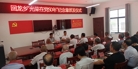 今日房县网讯 记者刘臣 报道:6月25日,在庄严的国歌声中,回龙乡举行“光荣在党50年”纪念章颁发仪式,向15名“光荣在党50周年”的党员颁发纪念章。