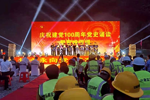 晚会在十房一级路项目指挥部合唱曲目《没有共产党就没有新中国》中拉开帷幕,歌曲《我的中国心》《大中国》《我的祖国》等一首首经典歌曲,共同唱响庆祝建党百年的辉煌乐章,讴歌中国共产党领导中国人民为实现中华民族伟大复兴取得的丰功伟绩,送上了对中国共产党百年华诞最诚挚的祝福;诗朗诵《永远跟党走》《亲爱的母亲伟大的党》《党的赞歌》等,在优美的旋律和动情的朗诵声中,徐徐展开中国共产党建党百年来波澜壮阔的历史画卷。