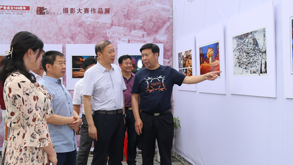 今日房县网讯 记者 杨正强 通讯员 张立林 许兰 李明琴 报道:6月28日,房县庆祝中国共产党成立100周年“房州古镇军店老街摄影大赛作品展”在军店镇下店子开展。县委常委、宣传部长董诠闻,县政协副主席熊祖友出席活动。