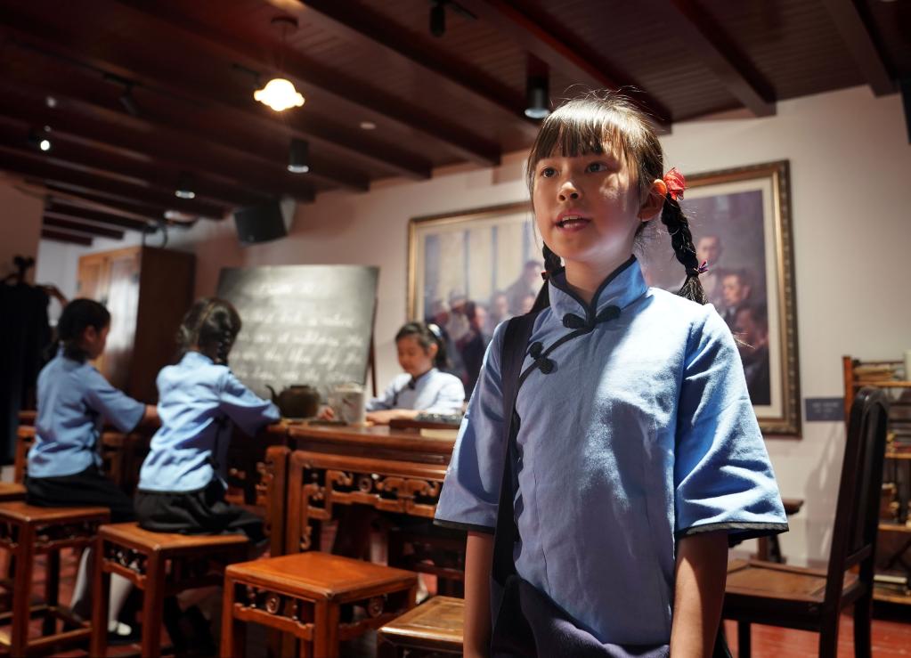 5月31日,全新布展提升后的中共四大纪念馆重新开馆,首批“小红花”小小讲解员进行了专场情景剧的首演。新华社记者 刘颖 摄
