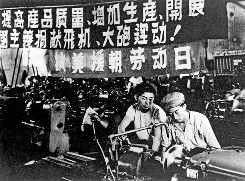 与此同时,全国人民还积极开展增加生产、厉行节约及爱国丰产运动。在爱国主义精神的鼓舞下,工人们提出“工厂即战场,机器即枪炮”的口号,许多工厂夜以继日地为志愿军生产军需物品、武器弹药;广大农民踊跃交售“爱国粮”,全力保障前线的物资供应。为进一步加强国防,中国人民抗美援朝总会发出号召,动员全国男女老少、各阶层人民开展捐献飞机大炮运动。至1952年5月底,全国人民支援朝鲜前线的捐款可购买战斗机3710架,有力地支援了志愿军作战。为了表达对志愿军的尊敬和爱戴之情,鼓励他们英勇作战,全国人民响应号召,掀起慰问志愿军的热潮。组织各种慰问团,代表各民主党派、各人民团体、各少数民族,以及各地区的革命烈士家属、工商界、文化艺术界等各界人民,深入朝鲜前后方各地区,慰问志愿军、朝鲜人民军和朝鲜人民。