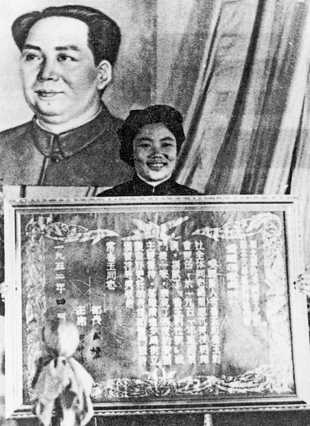 1951年,常香玉剧社巡回义演,捐献一架战斗机。图为常香玉接受西北军政委员会文化部和西北文学艺术联合会授予的“爱国捐献”奖状