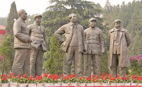 矗立在西柏坡纪念馆前的“五大书记”铜像