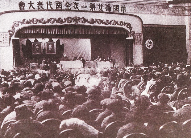 1949年3月24日至4月3日,中国妇女第一次全国代表大会在北平中南海怀仁堂召开。与会代表500余人,来自东北、华北、西北、华东、中原5个解放区,以及国统区、边疆各省和海外各地。毛泽东接见全体代表,并为大会题词:“为增加生产,为争取民主权利而斗争。”蔡畅致开幕词。董必武代表中共中央致词。这次会议是中国妇女有史以来第一次全国规模的盛会,为在党的领导下凝聚各界妇女群众奠定了基础。