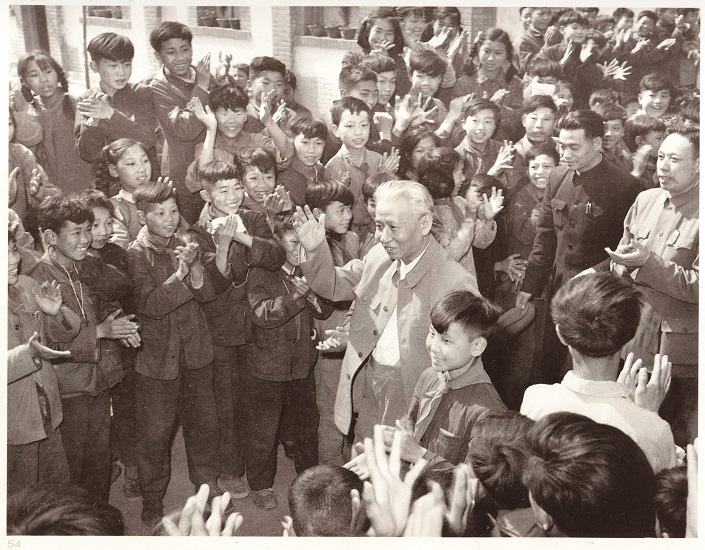 1964年5月,邓小平、贺龙、杨尚昆、吴晗等在北京景山公园和儿童们在一起