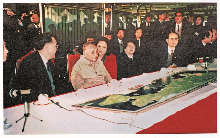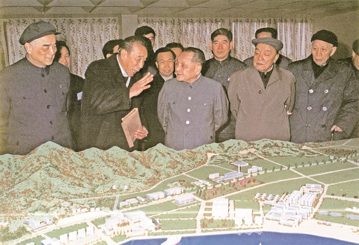 1984年1月24日至29日,邓小平视察深圳、珠海、厦门经济特区并先后题词,肯定特区建设所取得的成绩。图为邓小平在深圳蛇口工业区视察时听取工业区领导介绍情况