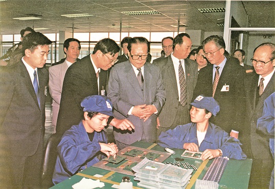 1995年12月6日,江泽民在深圳考察。图为江泽民在深圳长城计算机集团公司视察