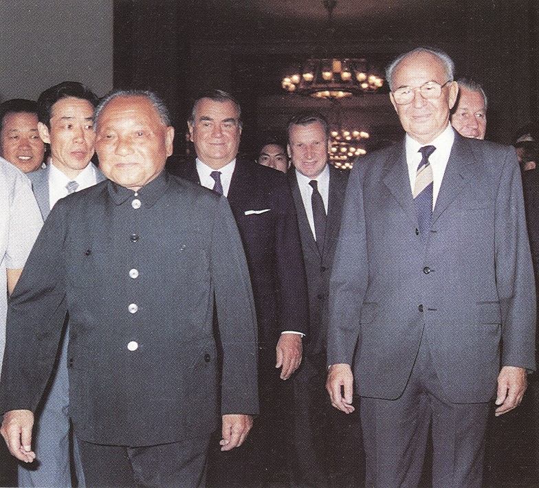 1988年9月5日,邓小平在会见捷克斯洛伐克总统胡萨克(前右一)时,提出了“科学技术是第一生产力”的著名论断