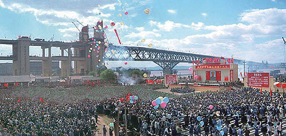 5万多军民参加南京长江大桥铁路桥的通车典礼